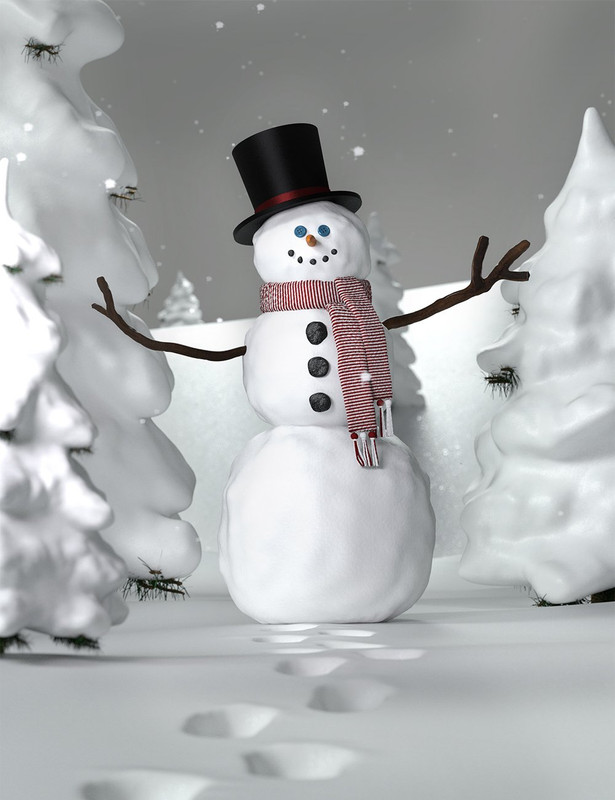 From there, use any of the accompanied morphs and props to create foot prints, snow drifts and sled trails! Build a snowman, have a snowball fight, go sledding, or just enjoy the open tundra with new fallen snow.